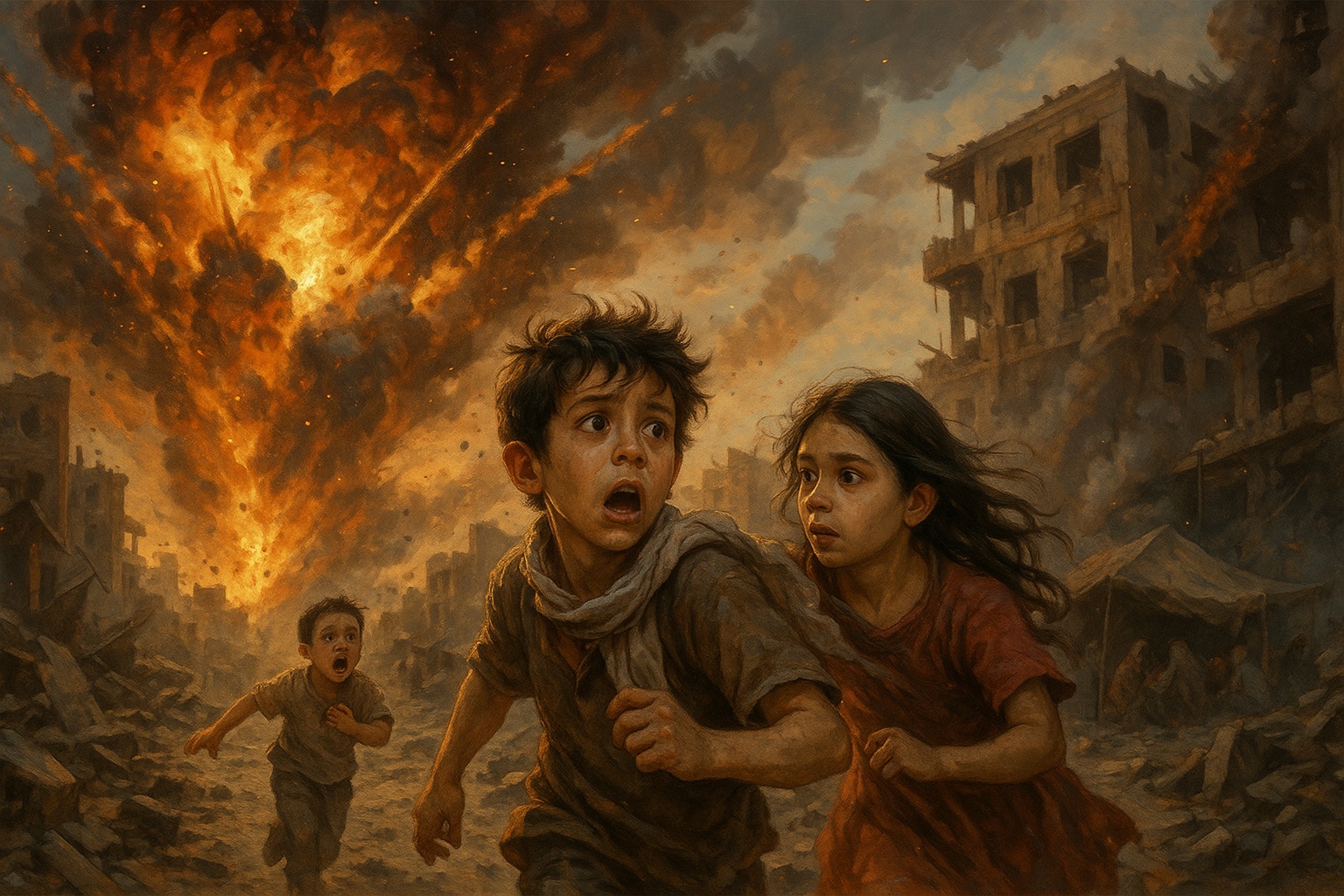Explosions scar sky Gaza homes fall, children flee Shelters fill with grief