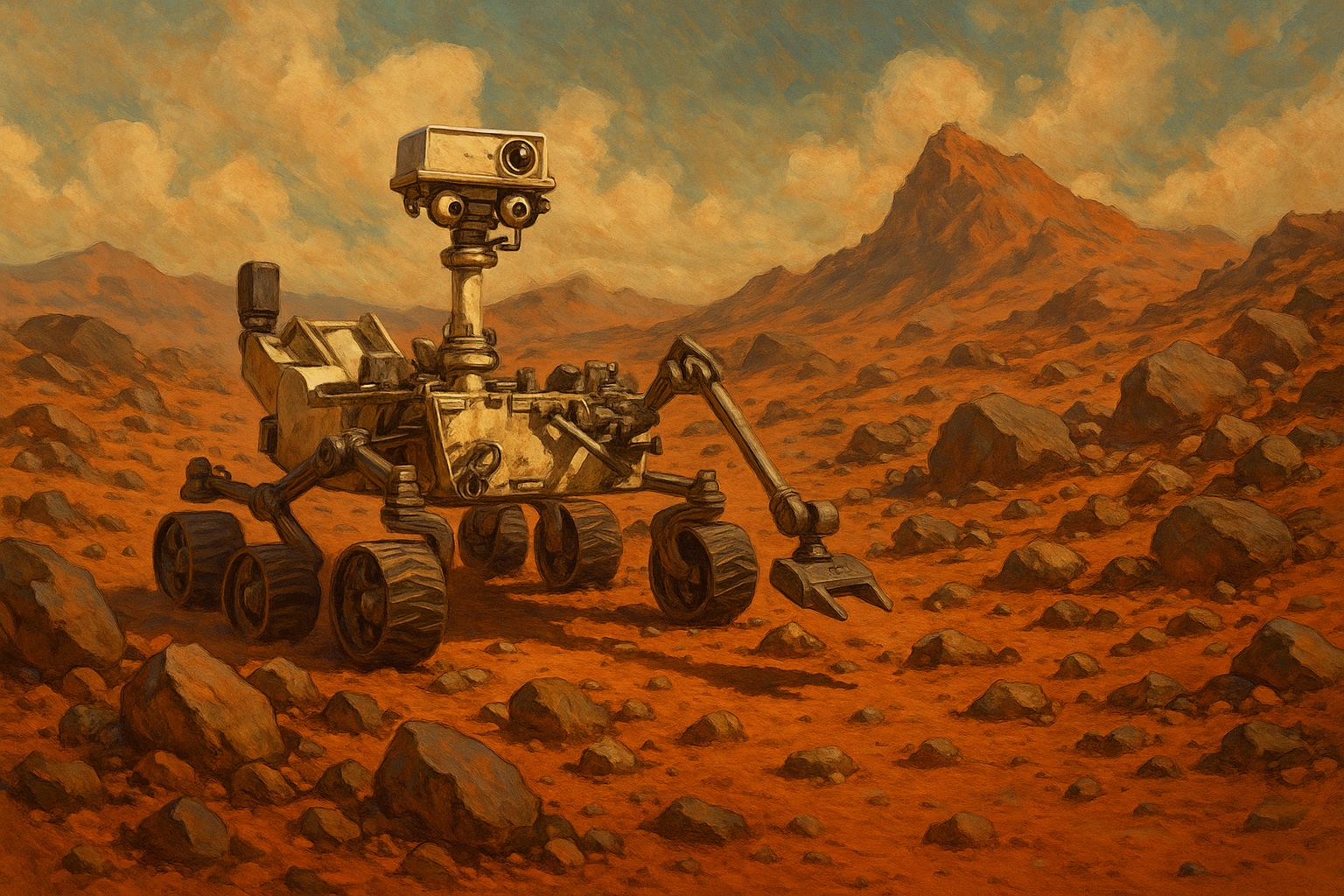 Rover trusts its eyes machine mind maps rock-strewn paths new steps on red dust