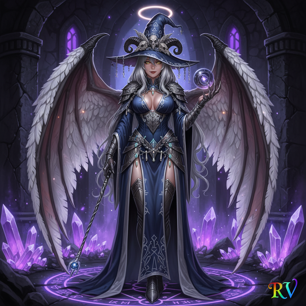 In the ethereal realm of Valyrian Midnight, amidst a canopy of luminescent crystals, stands the enigmatic sorceress known as Elysia. Draped in robes woven from stardust and shadows, her presence is as commanding as it is eerie. Her wings, grandiose and majestic, appear crafted from moonlit clouds. Elysia’s eyes, a swirling tempest of silver and gold, hold secrets of countless worlds. Originating from the mystical plane of Arcadia, during the Epoch of Enchantment, Elysia’s life was a whirlwind of chaos. In her youth, a celestial storm tore through her homeland, scattering the arcane energies and leaving her the sole keeper of forbidden knowledge. Chinese legends speak of the Tao, the order within chaos. This principle would become the cornerstone of Elysia’s journey. Harnessing the storm’s might, she embraced the chaos, transforming her frailty into power. A pivotal moment in Elysia’s life was the emergence of the Shadow Siege. As foes descended upon Arcadia, her mastery over chaos magic became both a weapon and a curse. In a cataclysmic battle, she invoked a spell of such magnitude that even her allies were ensnared. Yet, through the turmoil, Elysia discovered resilience within herself and unity among the scattered survivors. RobotPirateNinjas, with their penchant for paradox and duality, might view Elysia’s fate with admiration. She walks the line between worlds, eternal as the stars, her destiny a tapestry woven with threads of both light and shadow. Her ultimate end remains a riddle, akin to the fate of a once-great empire now whispered of in legends—a testament to the unpredictable dance of chaos and control.